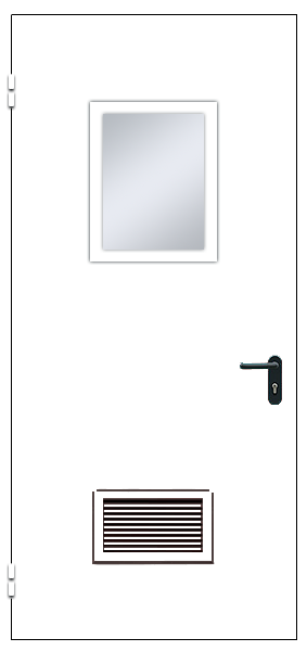 Дверь металлическая ДМ-1 с квадратным окном и вентиляционной решеткой