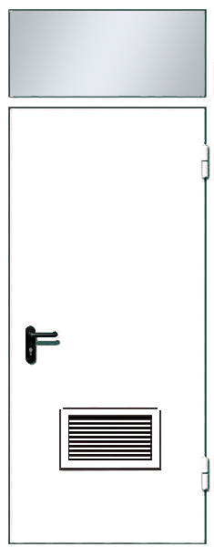 Дверь металлическая ДМ-1 с вентиляционной решеткой и фрамугой